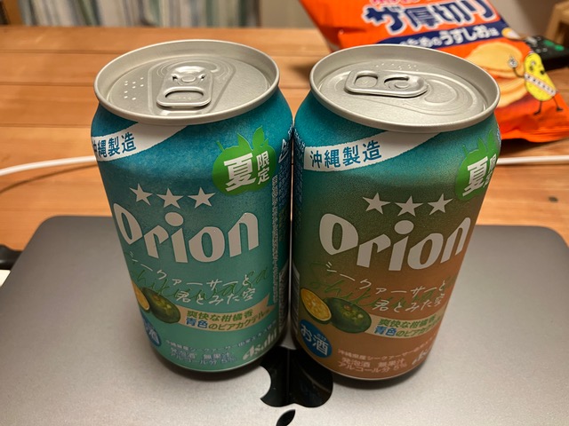 8月28日(木曜日) オリオンビール酒はみんなとワイワイ楽しく飲むのが好きなので、自宅で一人で飲酒することはまずない。でも最近、たまたま見かけたオリオンビールにハマっている。夏限定のシークァーサーのビアカクテル=写真。開栓すると爽快な柑橘の香りが漂ってくる。オリオンビール自体が軽くてあっさりスッキリしているが、さらに飲みやすくて美味しい。つまみにはグリコの「クラッツ」(ペッパーベーコン)が合う。もともと酒はそんなに強くないから、寝る前に1本飲めば十分だ。
